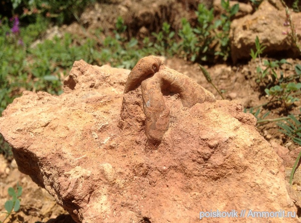 Брахиопода в породе. Размеры: 4см Х 4см. Нашли на месте "чужих", похоже - студенческих раскопок.
