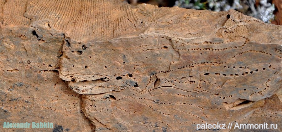Под вертикальным срезом отпечатков мшанок вы имеете ввиду цепочки дырочек на разрезе?