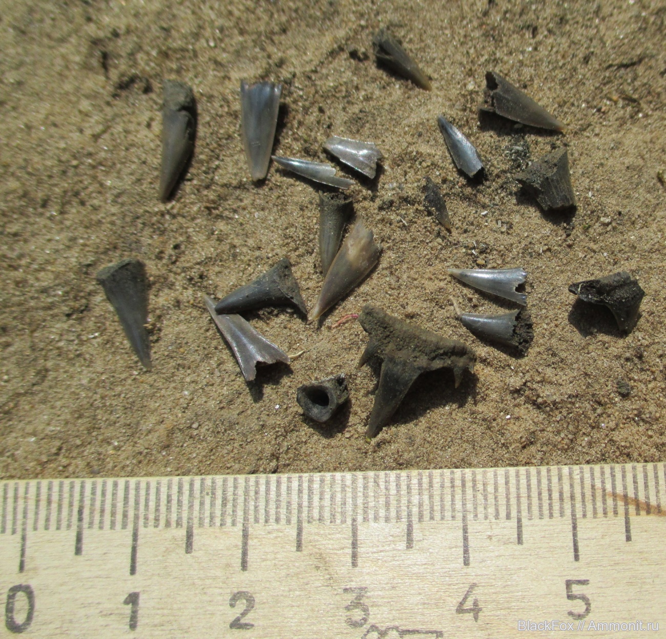 Небольшая россыпь зубов акулы Sphenodus, немного терпения и вот, что удалось добыть путем просеивания породы из отвала сидя в тени молодого леса жарким летним днем!