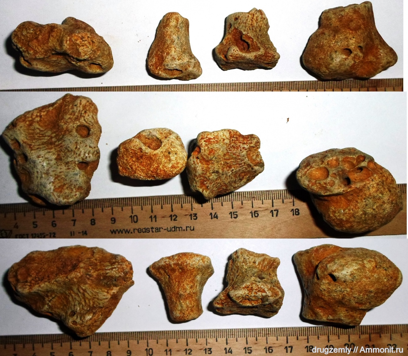 Переотложенные и окатанные меловые (?кампан-маастрихтские) губки Rhizopoterion. | ||||||