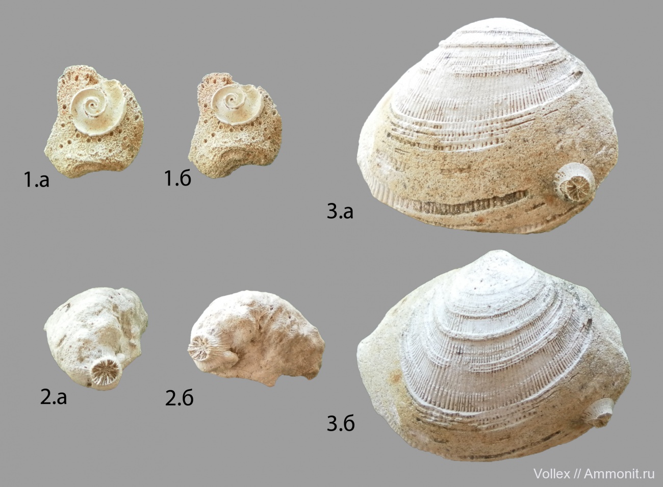 Интересные образцы.2 и 3 прижизненные прикрепления планул кораллов,не знаю можно ли это назвать обрастанием.В обоих случаях неудачное для личинки коралла прикрепление.Долгое время пытаясь выжить за счёт слабой циркуляции создаваемой моллюском и сформировав кораллит,в конце концов вместе с субстратом захоронена в осадке. | ||||||