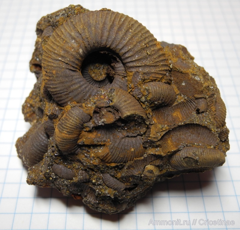 Подобные "моноспецифичные" конкреции, в которых встречается только один вид аммонитов, попадаются и на Черёмухе. Аммониты, по всей видимости, как и современные колеоидеи, были "одноразовыми", то есть в основном умирали после первого и единственного в жизни спаривания. Если конкреции на дне формировались довольно быстро (за недели или месяцы), они могли захватить раковины этих умерших аммонитов. При этом аммониты на дне могли быть одного лишь вида, так как периоды размножения у разных видов различались (чтобы не конкурировать друг с другом). | ||||||