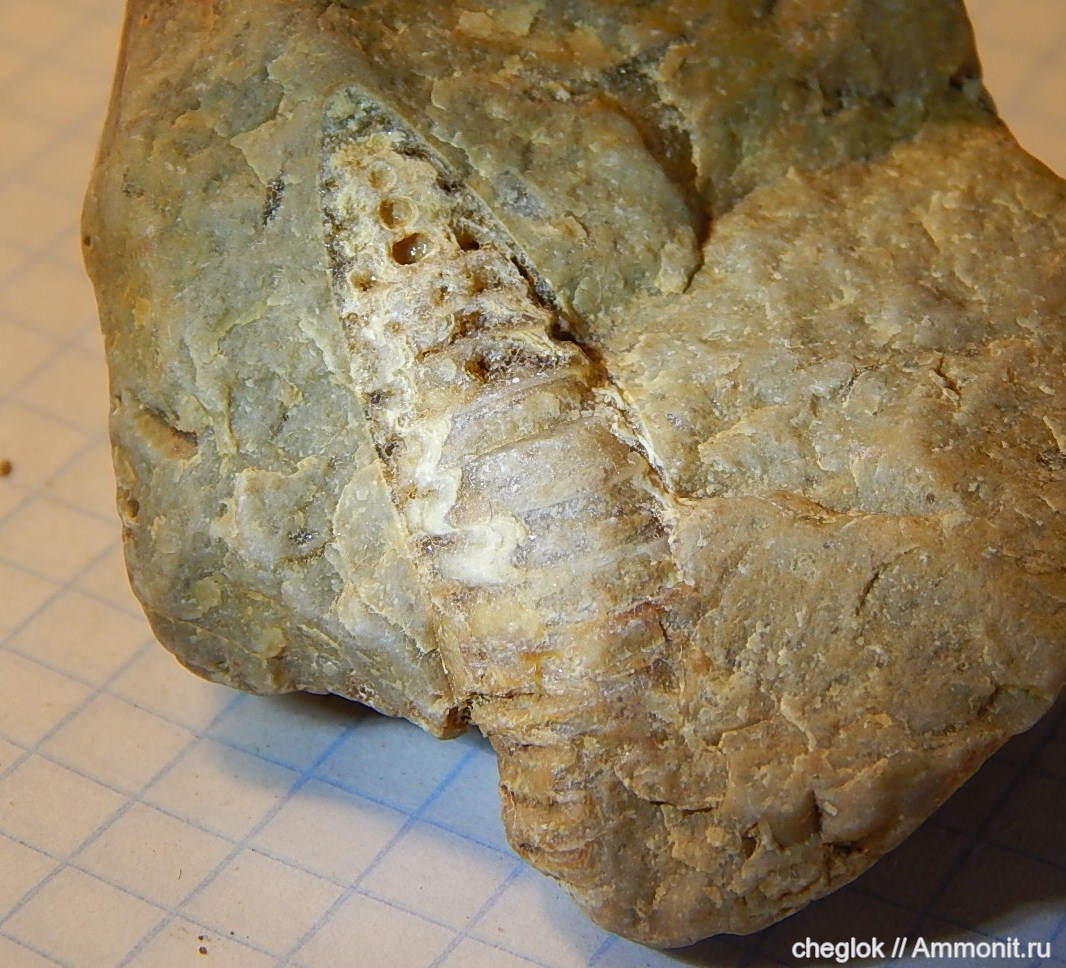 Сифон у него с выпуклыми сегментами, так что это либо Actinocerida такой странной сохранности, либо кто-то из Pseudorthocerida. | ||||||