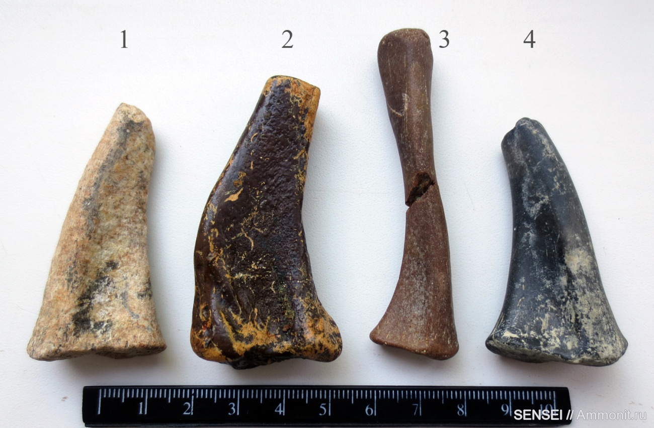 На фото пример разного замещения больших берцовых ископаемого тюленя с-ва Phocidae из разных местонахождений.