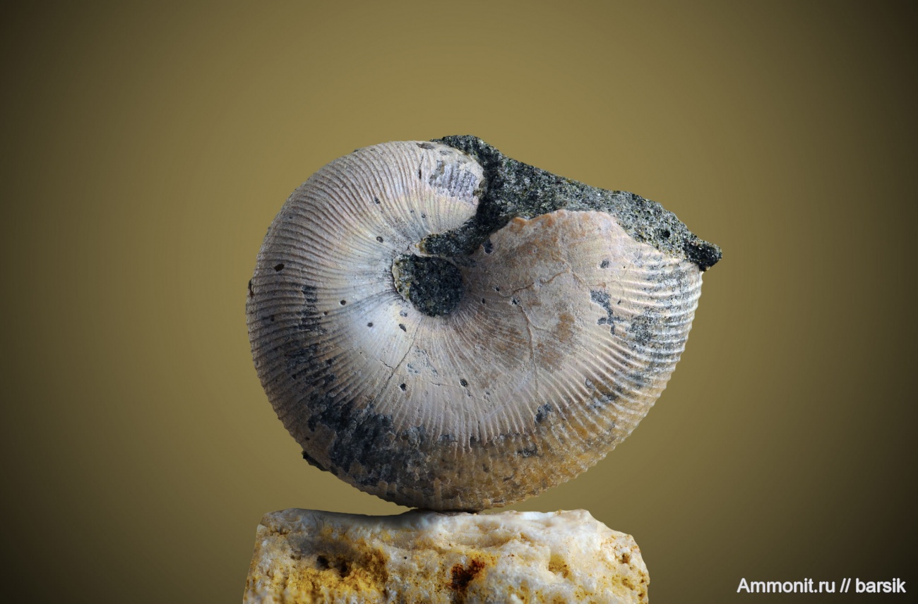 Один из многих замечательных аммонитов, которые я получил в подарок от уважаемого Вадима (KVV71). Сохранение меловой фауны отличается от нашей юрской. Все ископаемые с раковинами, все без исключения, это и аммониты, и гастроподы, и двустворки. Очевидно, условия для захоронения на р. Курджипс были исключительно благоприятные и даже разные по составу раковины не растворились в конкрециях, а полностью сохранили свою форму. Небольшие по размеру, но очень интересные.