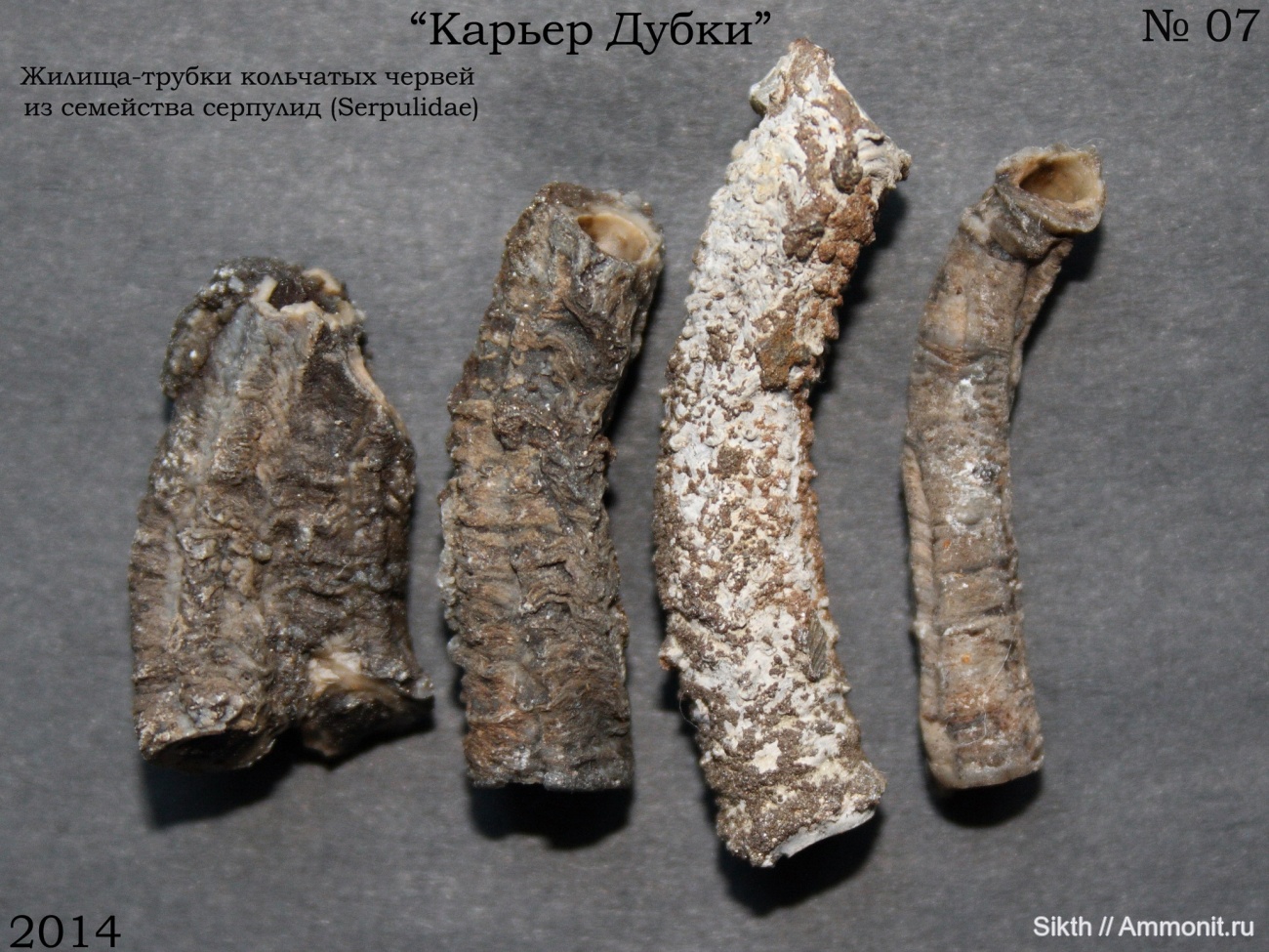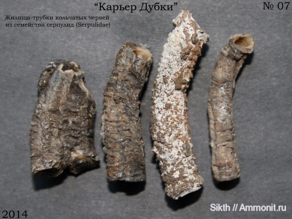 Весьма часто встречаются в Келловейской глине жилища-трубки кольчатых червей из семейства серпулид (Serpulidae). Нередко на Аммонитах и Белемнитах .