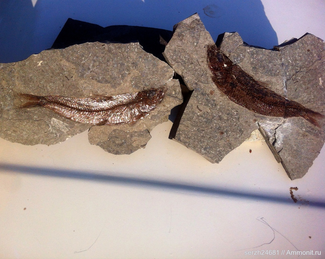 Образец был найден на р.Пшеха при расколе мергелевой плиты.Длинна рыбы 14см..Предположительно принадлежит к семейству сельдевые (Clupea sp ).