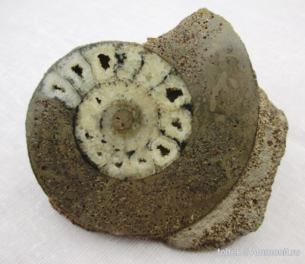 Кальцит в аммоните смотрится красиво, даже отдельные кристаллики проглядывают! | ||||||