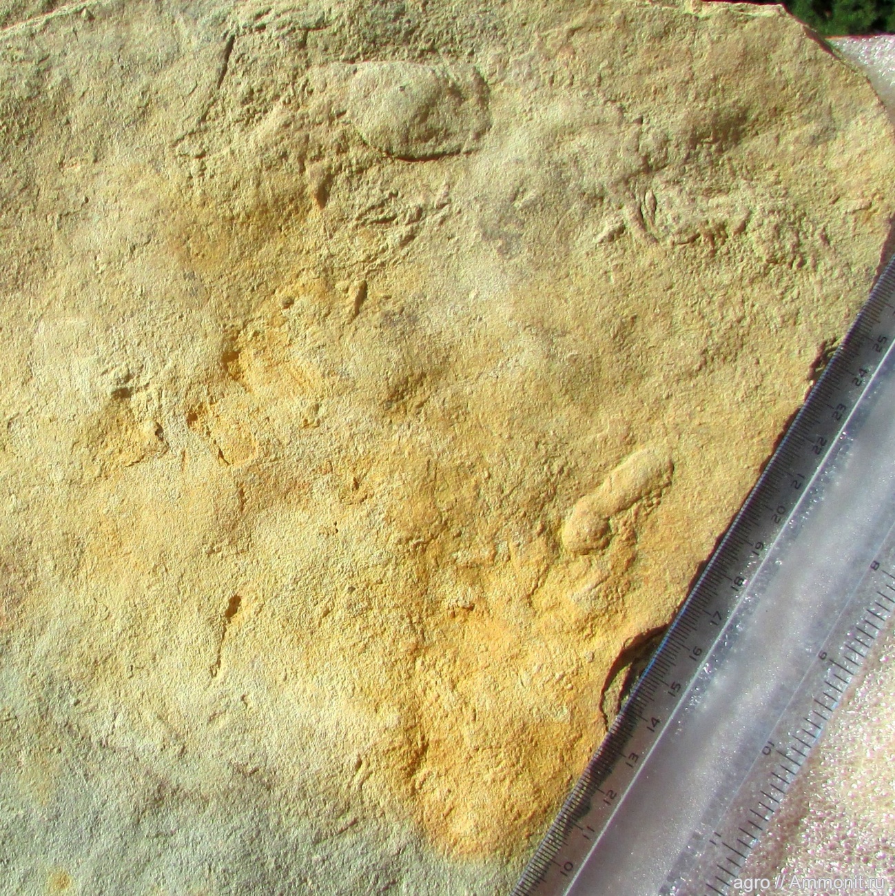 Нечто невнятное неясной природы. То ли отпечаток недиагностируемых останков чего-то живого, то ли осадочная текстура. | ||||||
