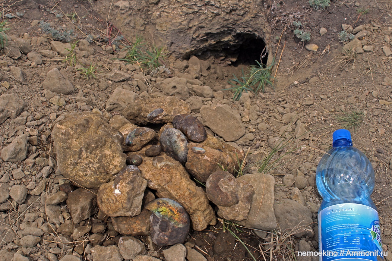 я после того как свои ракушки и белемниты нашел также из отработанного сурками материала ниже норы. начал постоянно просматривать норки сурков. заметил интересную деталь- они помогают определить слои . норки в разных высотах содержат песок разных цветов и мергель разной расцветки. если правильно ориентироваться то можно продолжить норку сурка в нужном слое и сэкономить кучу времени и сил. в данном случаи сурку явно понравилось рыть и отковыривать аммониты) | ||||||