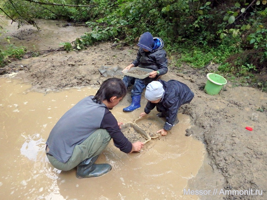 Жена не в восторге оттого, что ей там делать нечего. Туристические навыки она уже растеряла, костер развести не смогла, промывать в жидкой глине ей совсем не хотелось, вот и прогуливалась по оврагу, книгу почитывала, да ужасалась тому, как мы спокойно грязь по дождевикам размазываем ) А так - гордится нашими палеоэкзерсисами. | ||||||