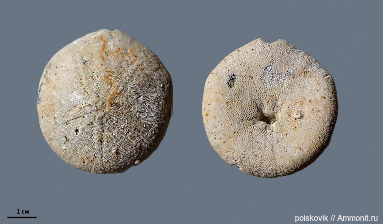 Морской еж размерами 5см Х 4,5см х 1,7см из маастрихтских отложений