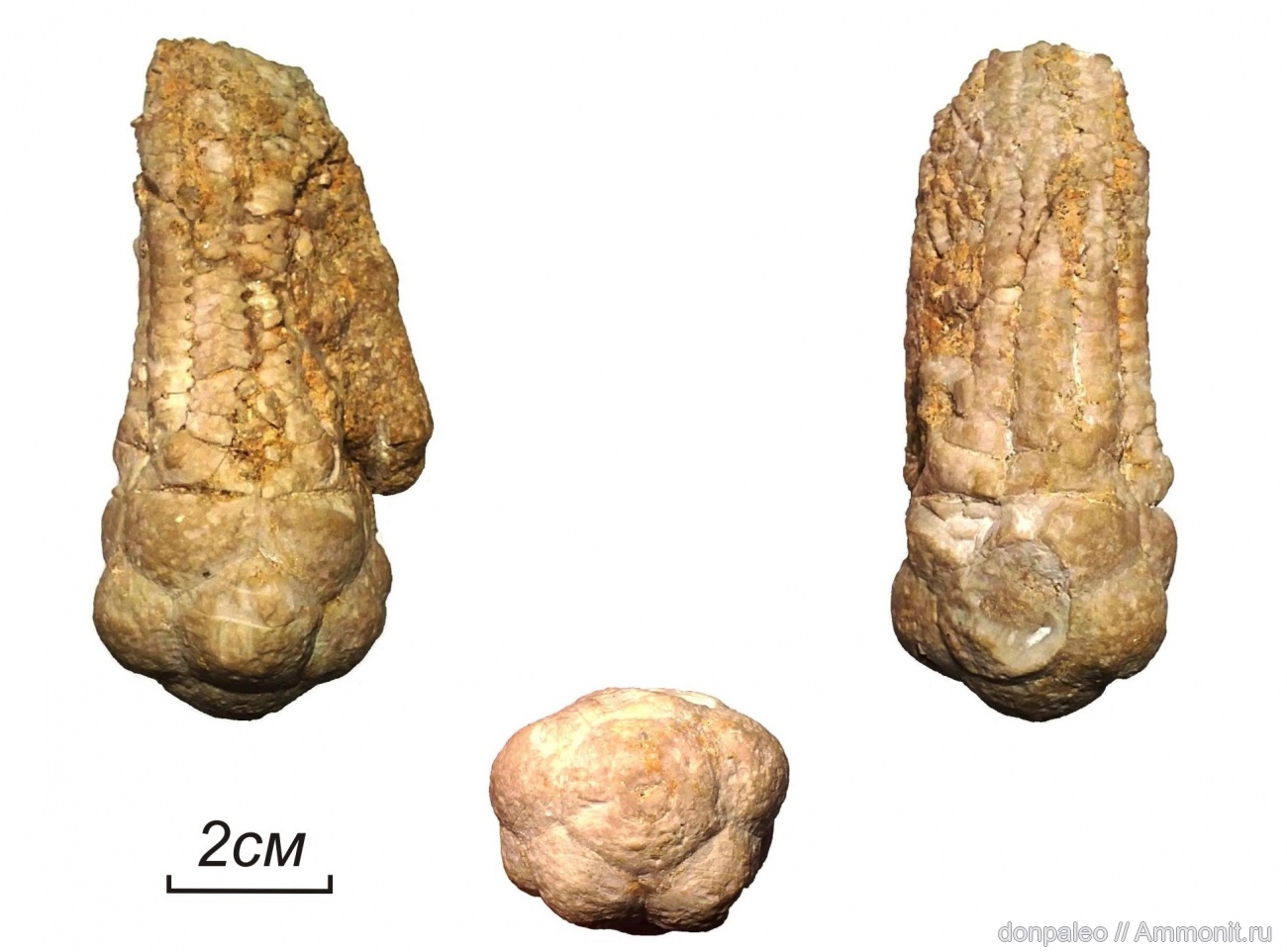 Красивый экземпляр с явно непростой судьбой. На правой картинке на уровне базальной таблички - это вмятина или скол? Может, Platyceras сидел на чашечке? | ||||||