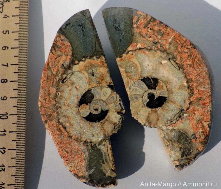 Редко встречаются красноватые цвета при замещении в аммоните.