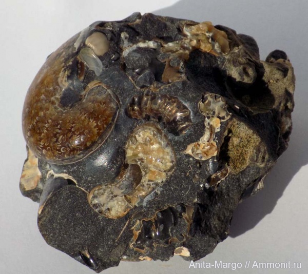 Хорошее скопление аммонитов, уничтожать, конечно, не обязательно, навык нужен, который приходит со временем и инструмент подходящий, тогда "убитых" аммонитов станет гораздо меньше.Вот например: композиция с Acanthohoplites bigoureti . | ||||||