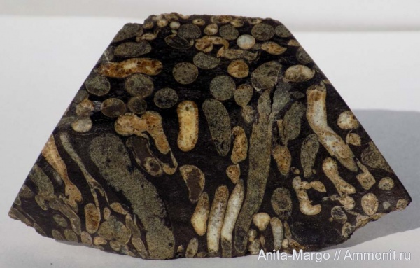 Образец хороший, но кольчатые черви и серпулы тут не при чем. Это ходы сверлящих моллюсков-тередо (их называют "корабельными червями", но к червям они отношения не имеют). | ||||||