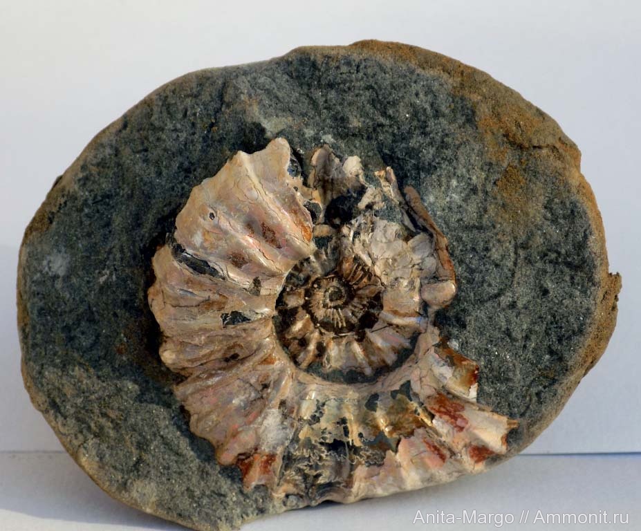 Правильно выбранное направление удара кувалдой, сохраняет даже такой аммонит вмурованный в конкрецию. )