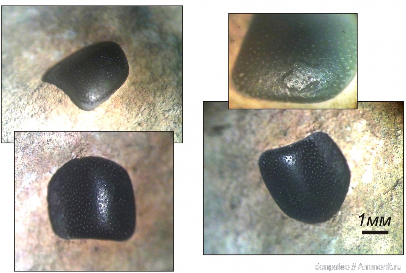 Небольшая слабоизогнутая зубная пластина четырёхугольной формы. Глинистая пачка известняка L5. Один экземпляр.