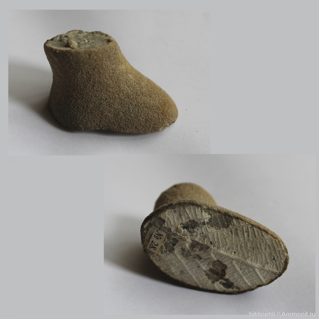 В образцом никаких манипуляций не производилось. Найден в таком виде. Размер подошвы порядка 50 мм, подойдет разве что котенку)