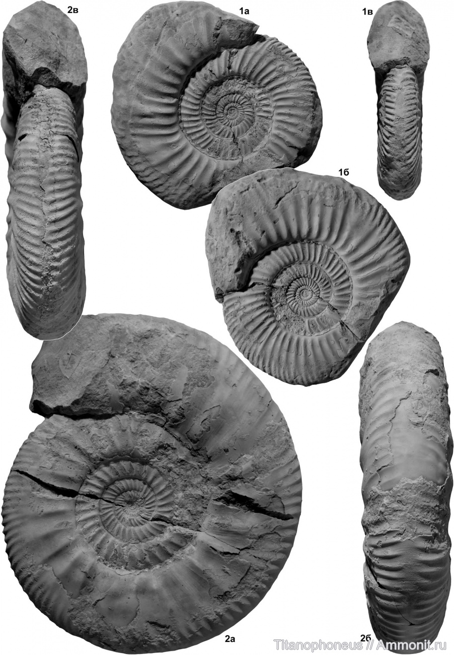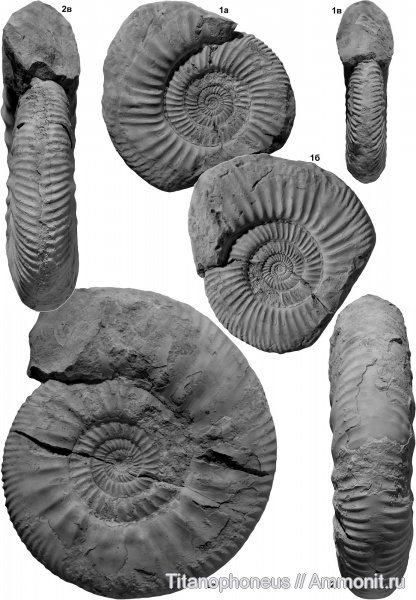 Фиг. 2 а-в. Parkinsonia (?Haselburgites) aff. admirandus (Buckman). WN-23. Хурукра, сл. 15.