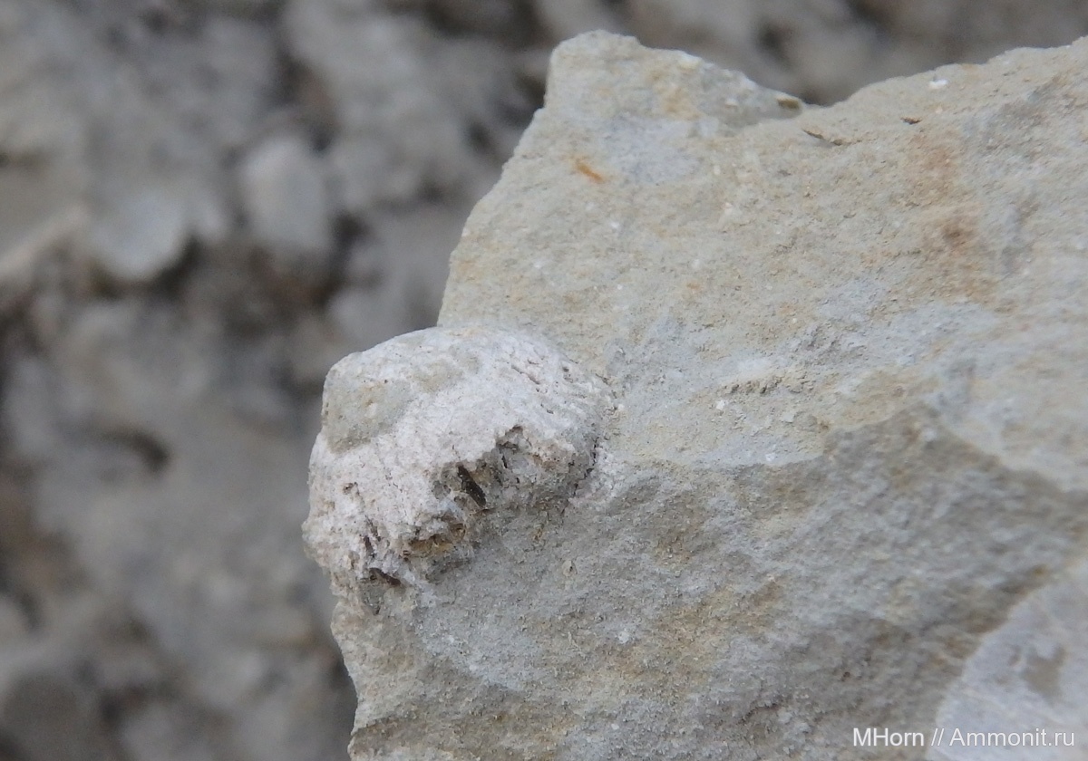 Это - первая (насколько мне известно) находка коралла в кимеридже Центральной России. Этот экземпляр (и ещё пара образцов худшей сохранности) был найден в прослое мергеля зоны Kitchini (биогоризонт bayi) нижнего кимериджа в карьере у д. Валы (Самарская обл.). Максимальный диаметр - около 0,5 см. Условно отнесён к роду Trochocyathus