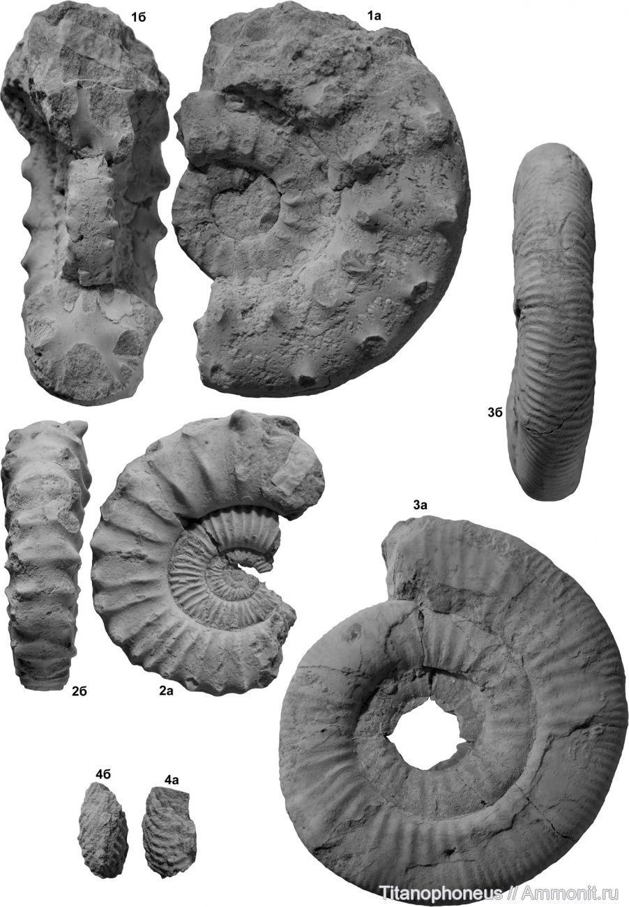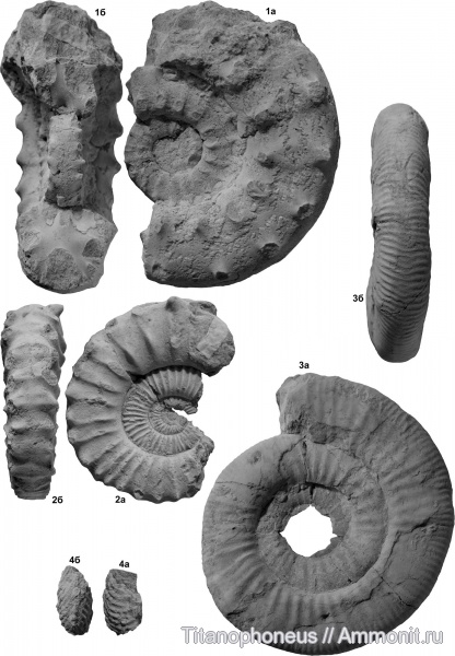 Фиг. 1 а,б. Euaspidoceras hirsutum (Bayle). WN-151. Буртанимахи, сл. 49, верхняя часть;