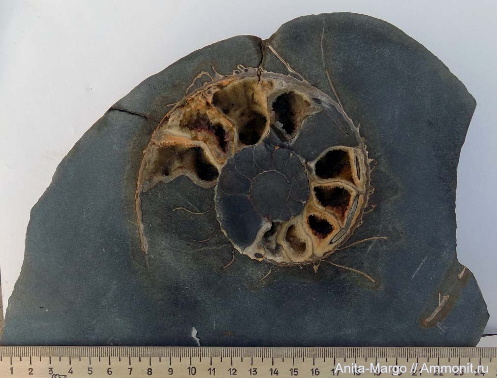 Видать он пережил многое кувыркаясь по реке Курджипс. Во время обнаружения только с одной стороны проглядывались остатки раковины. Пришлось разрезать.