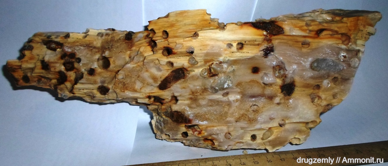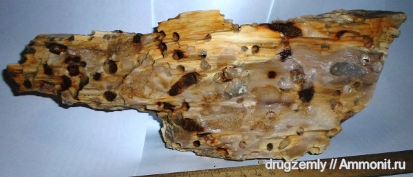 опалезированное окаменелое дерево с ходами древоточиц молюсков тередо.