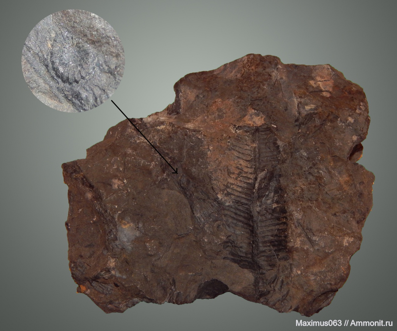 Размеры папоротника 50*20 мм. Размер выделенного образца 4 мм. Прошу помощи в определении папоротника и образца. К сожалению, улучшить качество фотографии пока нет возможности.