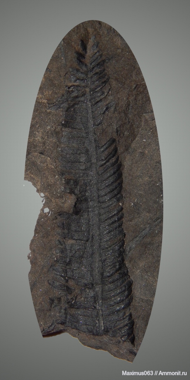Данный образец подарен геологом и просто хорошим человеком. Читинская обл., пос. Чара, каменноугольное месторождение Апсат. Сборы 1985 г. Алевролит. Юра. Размер 52*15 мм