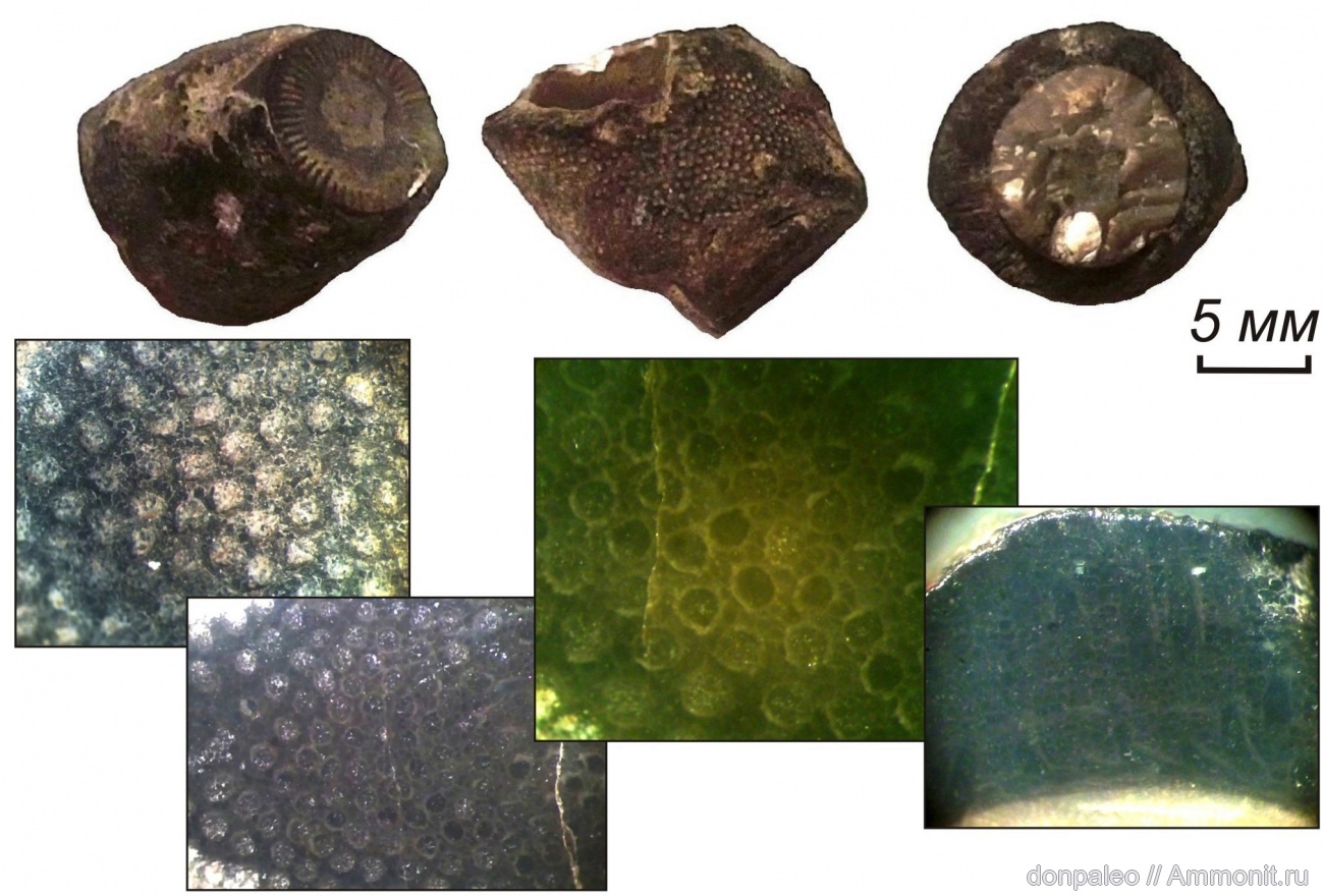 Колония обрастает членики морской лилии. Устье ячеек округлой формы. Пузырчатая ткань между ячейками близ поверхности зарастает плотным известковым веществом. Отличается от Fistulipora отсутствием лунарии и формой устья ячеек. Тёмно-серая пачка известняка L7. В связи с мелким размером колонии хорошие макрофотографии получить не удалось.