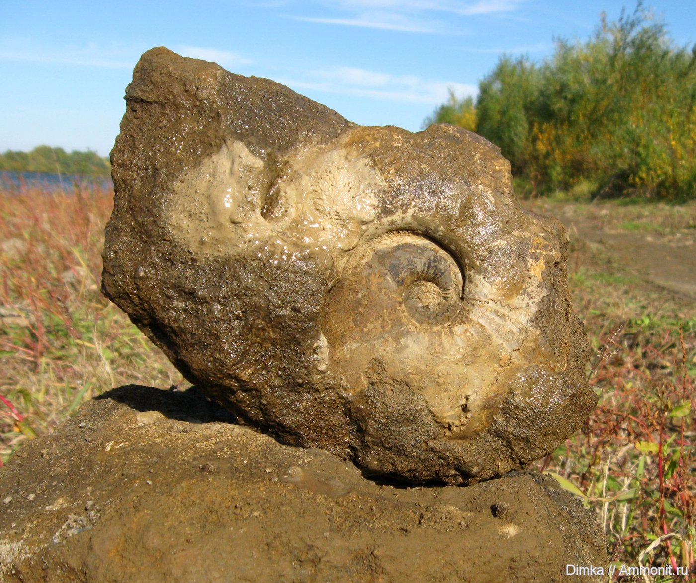 Свеженайденный аммонит на берегу р. Оки у д. Никитино. Найден в нижнекелловейском мергеле. Диаметр раковины около 13 см. Такой величины подобные раковины мне в этом месте ранее не встречались, для Enodatum он слишком большой.