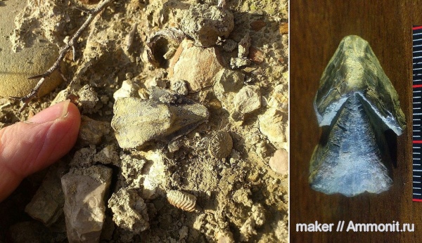 Зато много ринхолитов! Правда кушать их нельзя... ))) Но шли сегодня кучно. Первый вообще 3-х сантиметровик! Handrocheilus (Dentatobeccus) compositus Shimansky, 1986. Ну и кучка поменьше. Похоже у этого вида ринхолитов максимум - 3 см. Буду искать дальше. Может где подросли))).