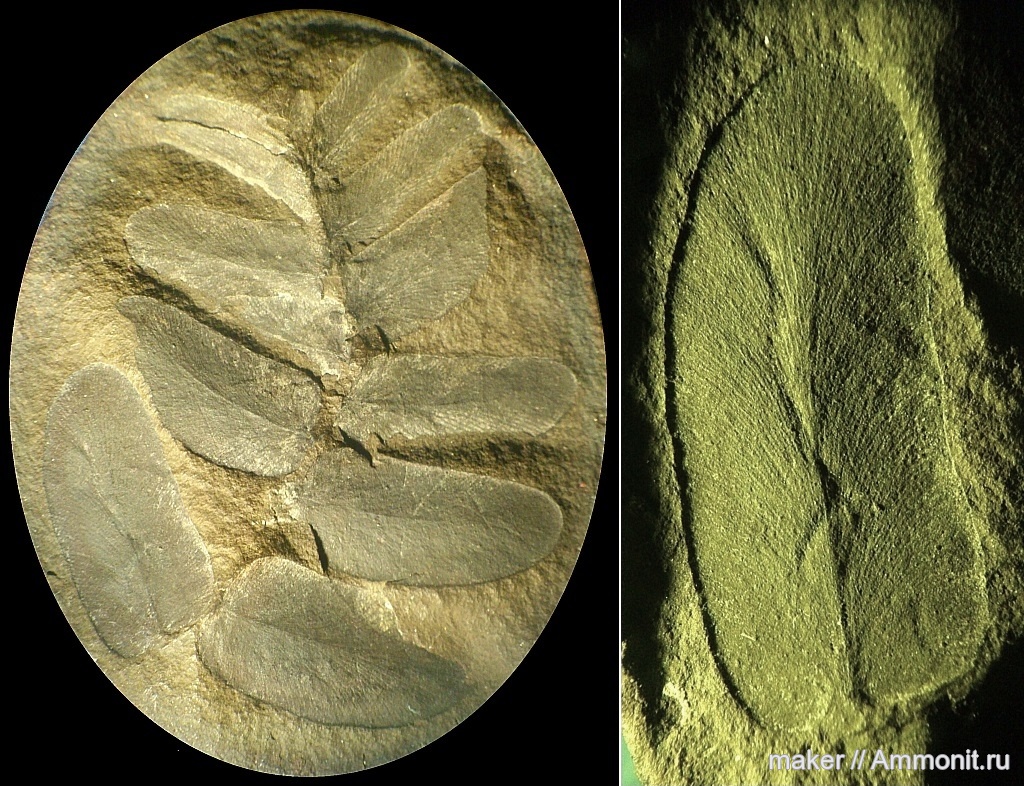 Еще один вариант перышка вайи Neuropteris. И тоже объемное. Правда только противоотпечаток верхней стороны пера... Всё остальное кануло в лету... Но всё-равно эффектно смотрится)))