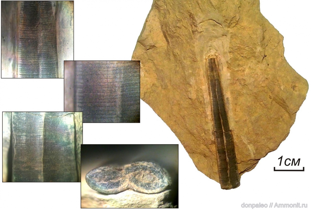 Я думал на счёт скафопод, но меня смутил большой размер раковины и развитие на поверхности не продольных, а поперечных рёбер. | ||||||