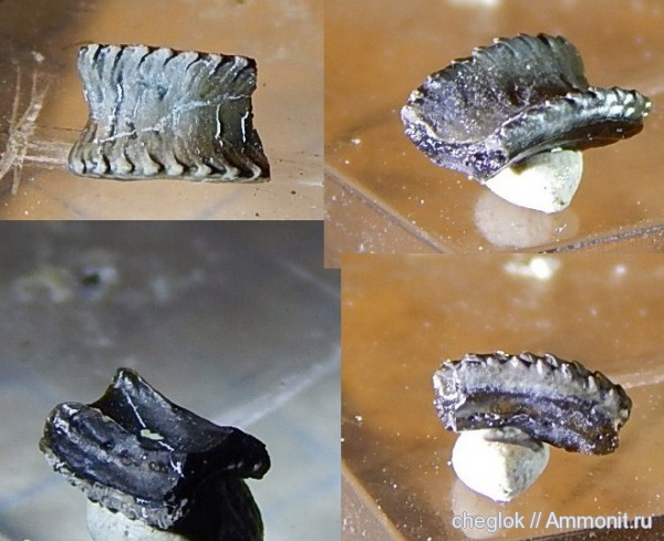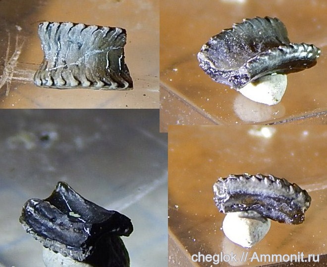 Тут просто: в белом известняке чернеет нечто. Кладём в уксус, известняк тютю и лежит нечто на дне. На зуб похоже обычно редко, это разве гликманиусы зубообразны,остальные на всё что угодно, от шины до соплей Дартвейдера. | ||||||