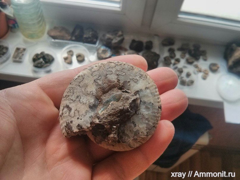 ни в коем случае. как раз тут видно скульптуру раковины, лопастную линию и кристаллы нарастания кальцита. а серединку если дочистить то вобще красота будет. только перломутр вряли удасться сохранить в середине. | ||||||