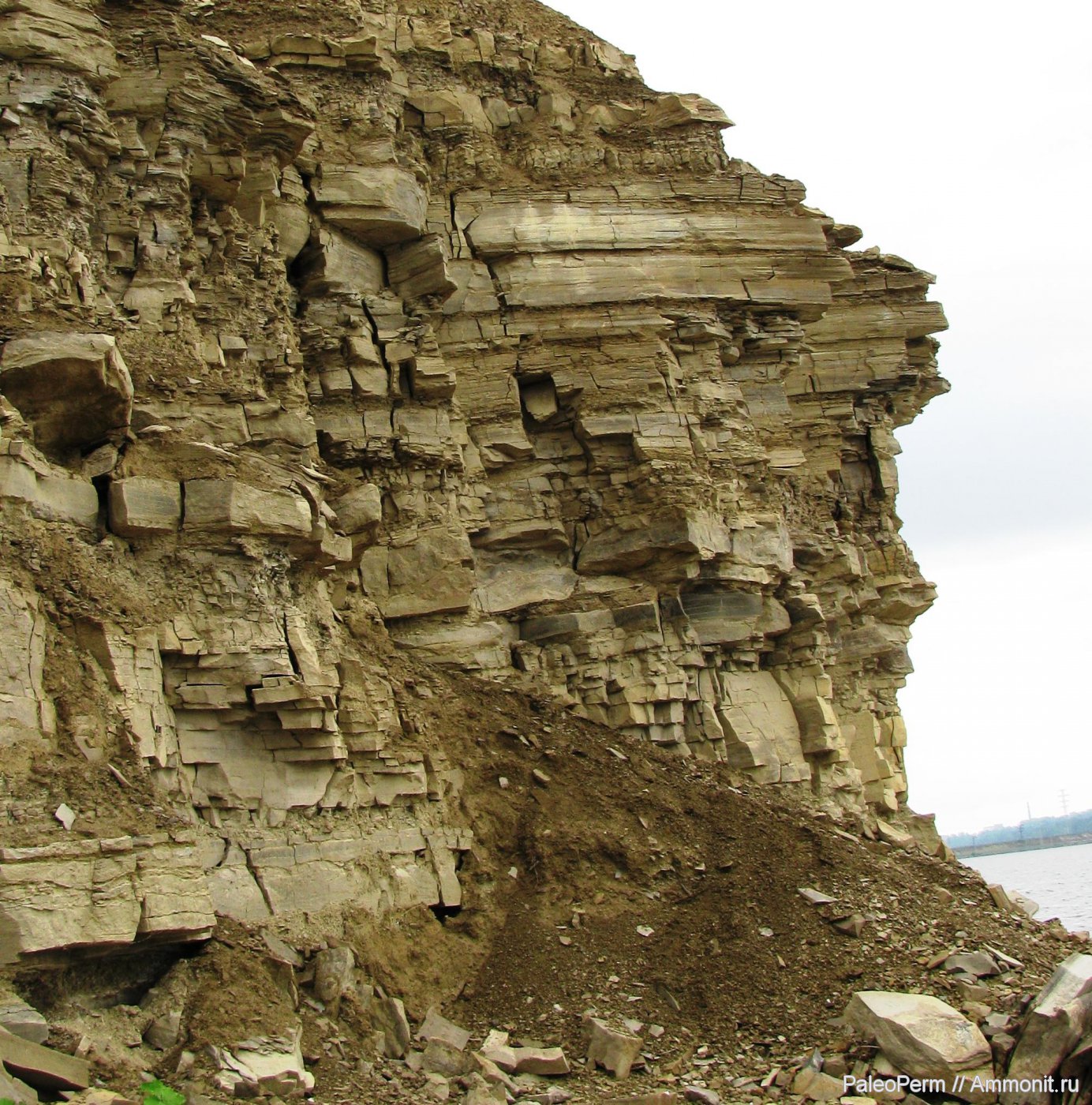 Внизу на берегу р.Кама это обнажение, а наверху карьер. | ||||||