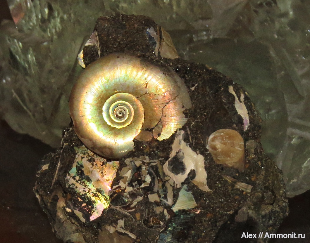 Этот маленький Kachpurites cheremkhensis (диаметр 2 см) с удивительным золотистым оттенком перламутра был найден вчера и совершенно неожиданно. Он прятался в небольшом обломке конкреции, которую я нашел на р.Черемуха и разобрал еще в прошлом году. Обломки, в которых не осталось аммонитов (как я думал), хранил на всякий случай, а теперь решил выкинуть. И перед этим буквально по наитию расколотил один из фрагментов - в нем оказался вот такой замечательный аммонит. Хотя аммонит был покрыт всего лишь тонким слоем породы, снаружи ничто не выдавало его присутствия. Потом конечно в пыль измельчил другие обломки, но больше ничего не нашел.