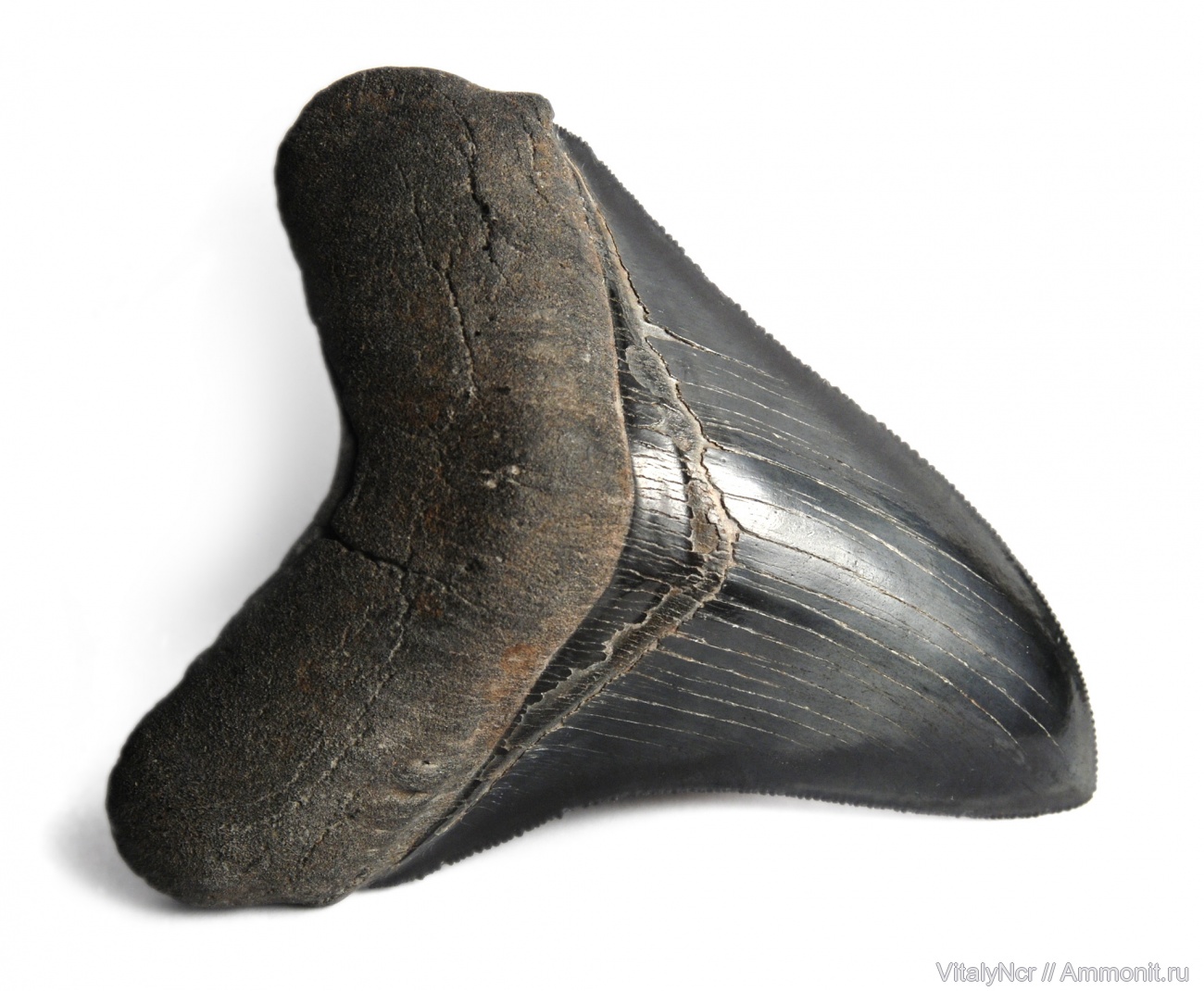 Средних размеров (10 см) зуб мегалодона (лингвально). Реставрация отсутствует.