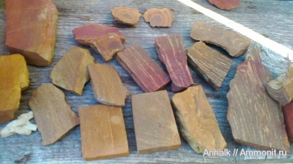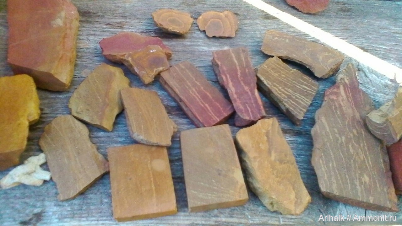 В процессе работы с глиной наткнулся в ней на интересные фрагменты. Подсобрал немного, отмыл и, некоторые, порезал. На фото, - результат, достаточно интересные образчики окаменевшего дерева. Предположительно, - нижний мел.