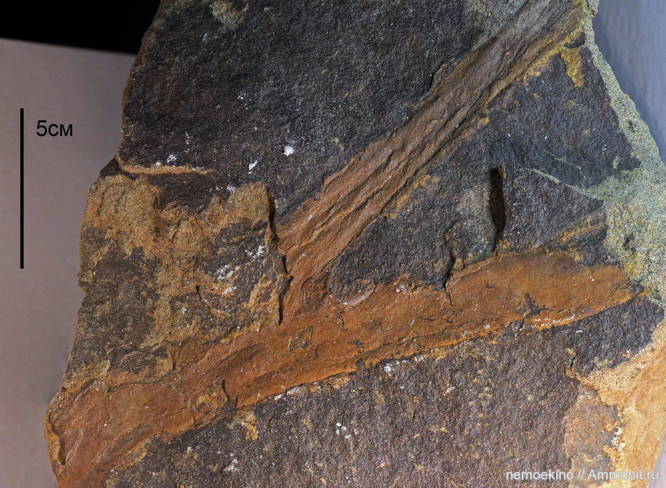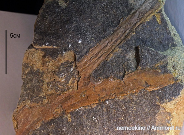 Отпечаток растения в месте ветвления. Потому как рядом были только отпечатки листьев кордаита, можно предположить, что эта веточка тоже относится к кордаитам.