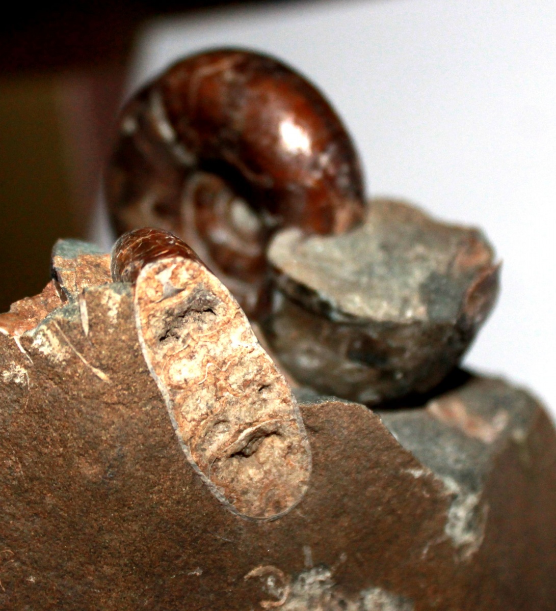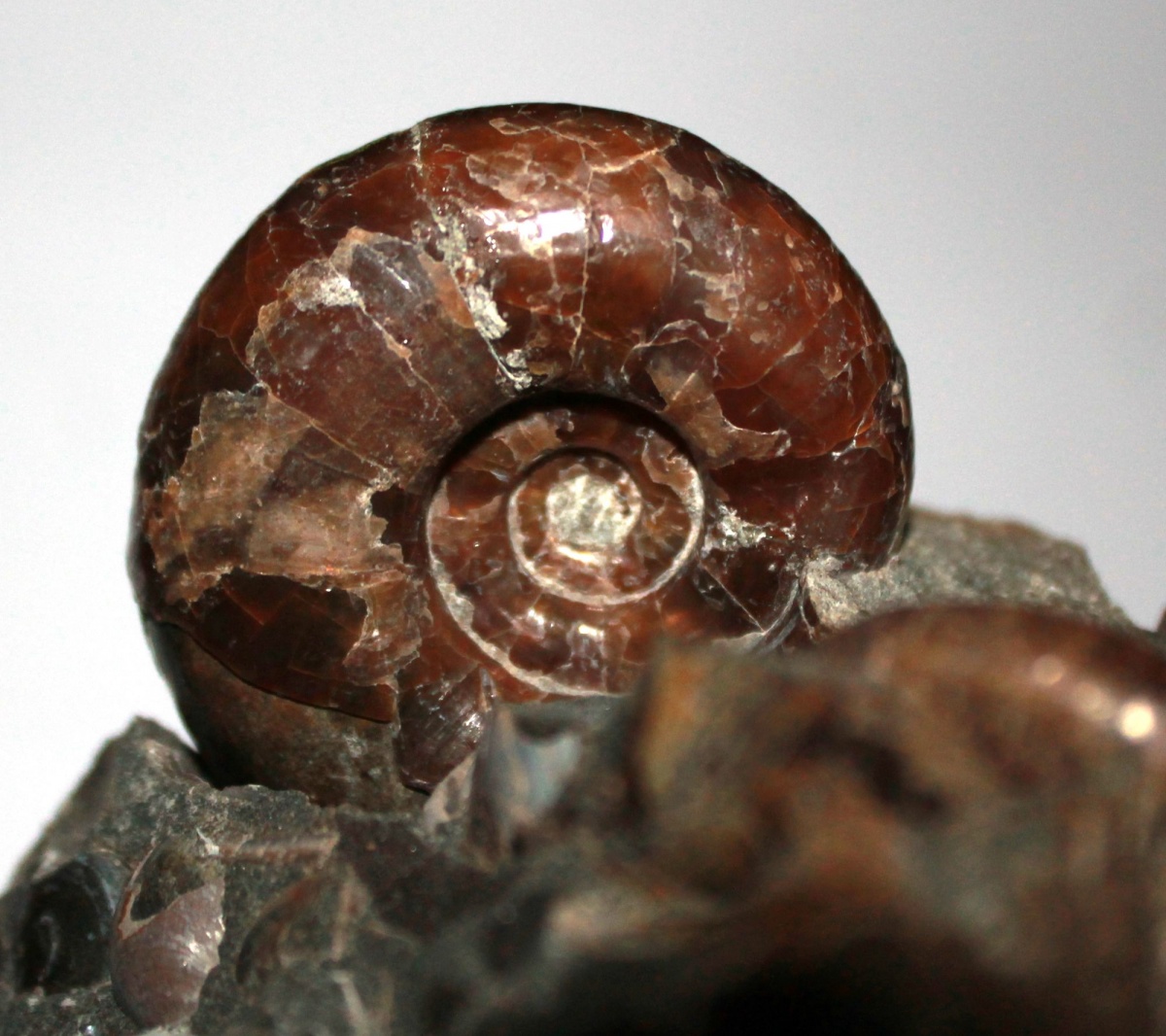 Вот "выловился" еще один красавчик, правда небольшая часть жилой камеры была просто размята породой, т.к. он находился тоже на самом краю конкреции фото, но сохранившаяся часть аммонита составила 6 см. И судя по всему это собрат аммонита с предыдущего фото. Перламутр сохранился не весь, но думаю, что это его не портит :). Обратную часть получилось нормально очистить ( все было в породе) фото
