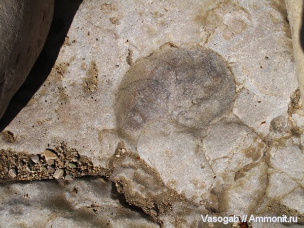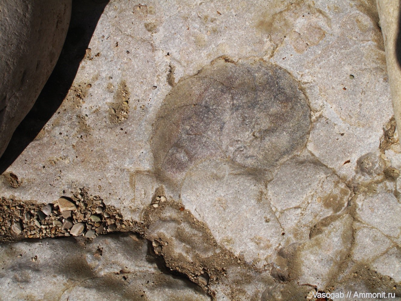 Да, следы с аммонитами найти в принципе возможно. Хотя тоже довольно сомнительно это. В прибойной зоне раковины перетерлись бы в песок. А там где аммонит мог бы сохраниться, вряд ли бы отпечатался след.