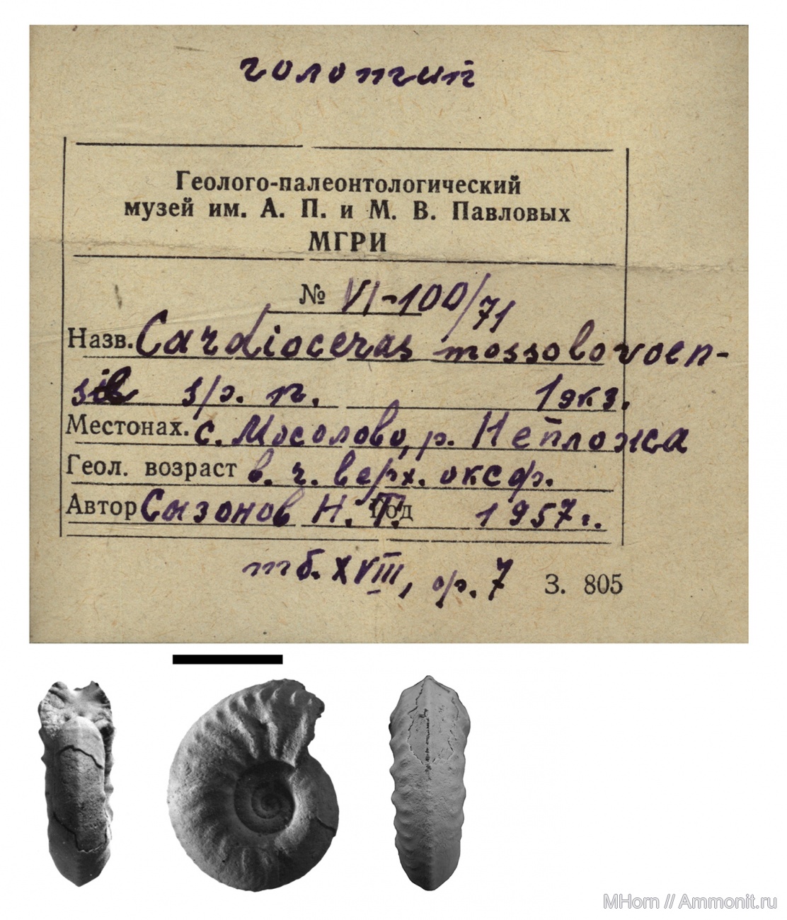 Ключевые слова (тэги): Cardioceras, голотип, Plasmatites, Plasmatites mossolovoense, holotype