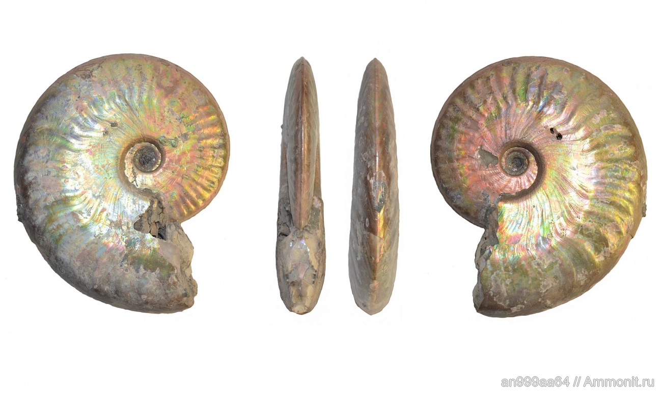Очень красивый аммонит! :) На доп. фото такой перламутр радужный, яркий! Это он по- видимому мокренький. | ||||||