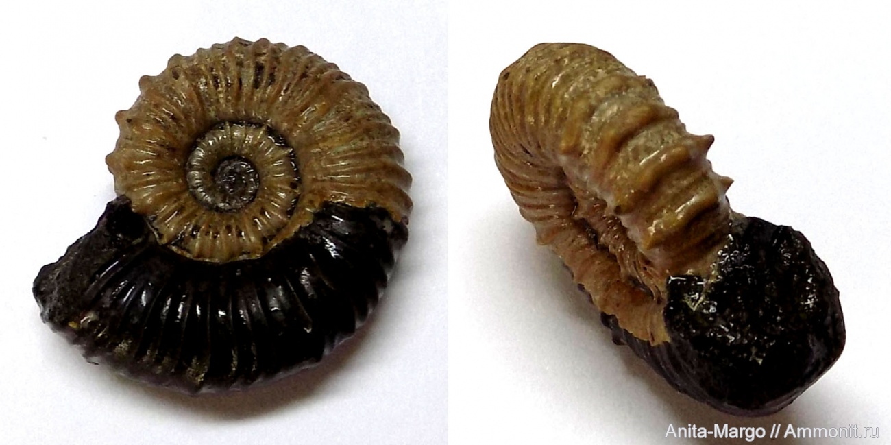 Образец интересен тем что вместо бугорков сохранились острые шипы на начальных оборотах аммонита.