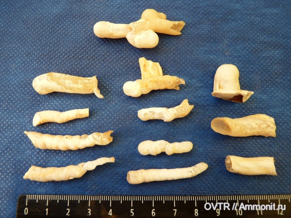 Халцедоновые ходы моллюсков-древоточцев, извлеченные из стволов голосеменных деревьев палеогенового возраста (Ростовская область). Некоторые ходы имеют весьма причудливую форму - доп.фото. В полости ходов видны натёки халцедона. Диаметр менее 1см, длина до 5см. Возраст около 40 млн.лет.