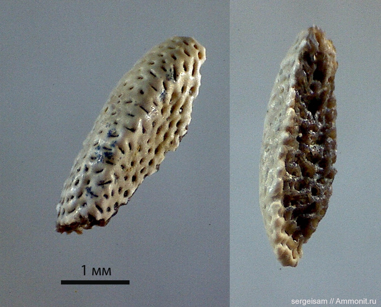 Я не совсем уверен в правильности определения, но по моему это кусочек зубной пластины хрящевой рыбы. Длина 3,8 мм.