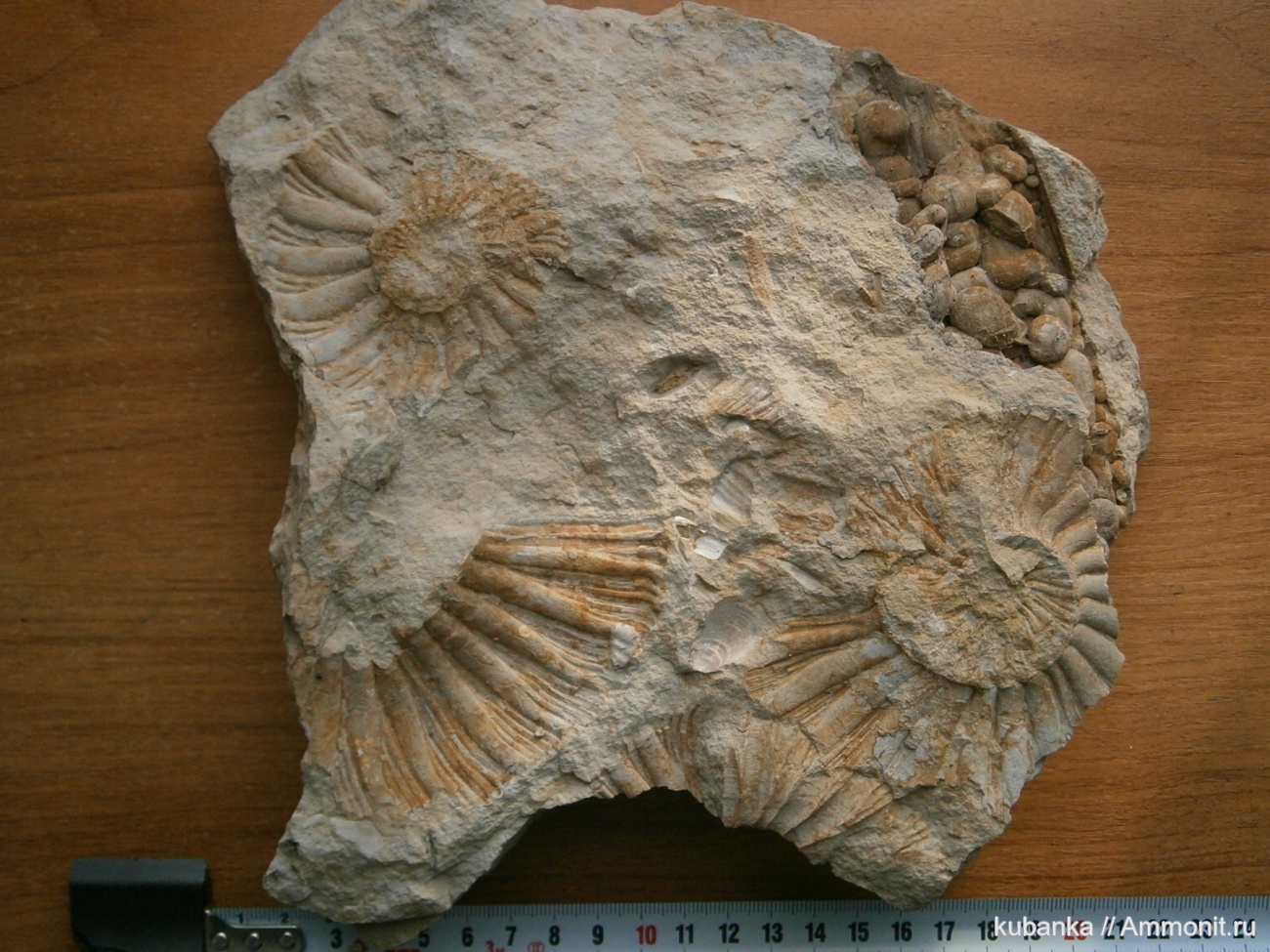 отпечатки аммонитов с другим слоем сильно окатаных "нечто морское" превращенных в гальки | ||||||